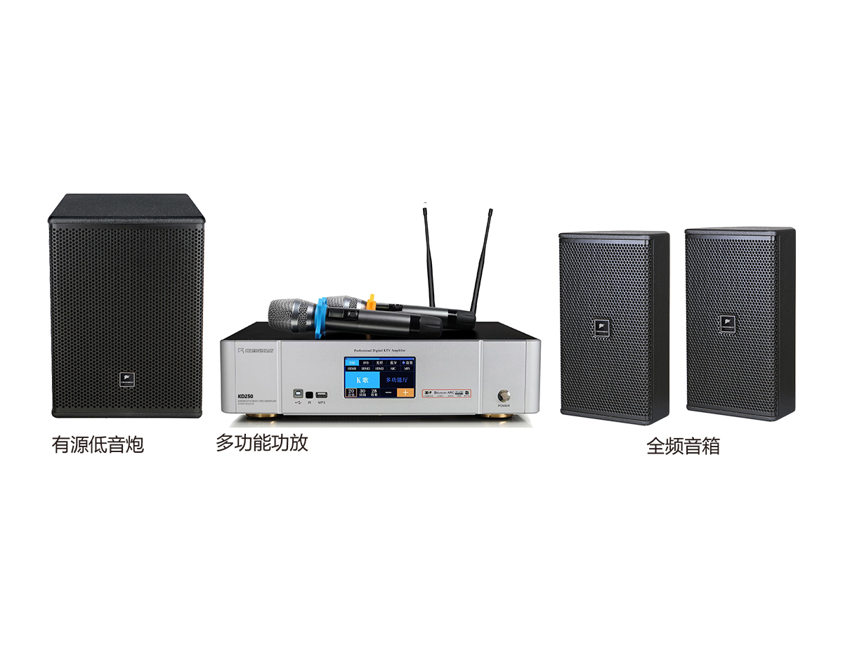适用场地:家庭卡拉OK,观影,蓝牙连接播放,HDMI连接 配搭方式:2只全频音箱,1只10寸有源低音炮,2只音箱墙壁挂架,功放主机:1台,无线话筒:2支,天线:2支,遥控器:1个,防滑圈2个,电源线1条 配件:标配